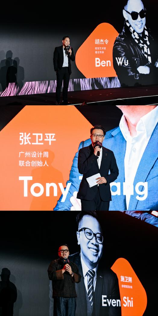 本次盛典得到了众多领导、嘉宾的大力支持。视觉艺术家、著名导演胡令杰先生(Ben导)、广州设计周联合创始人张卫平先生以及摩根集团总裁施卫刚先生先后登台致辞,为活动送上真挚祝福与期待。Ben导还为现场引荐了多位设计大师、合作伙伴与朋友们,让这场盛会更加星光熠熠。此外,摩根集团执行总裁袁朱明先生介绍了到场的地产商嘉宾,豪宅毒主理人邵原虎Tiger则带我们认识了引领风潮的达人们,他们的到来,为这场关于“光与智”的对话增添了更多元的声音。