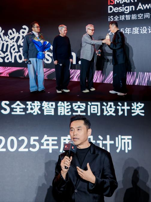 备受瞩目的“iS全球智能空间设计奖·2025年度设计师”殊荣,由空间设计师孟也先生摘得。梁志天设计集团创始人梁志天先生、国际著名设计师梁建国先生与著名设计师吴滨先生,三位设计名家共同登台,为孟也先生授奖,完成了一场意义深远的荣耀加冕。